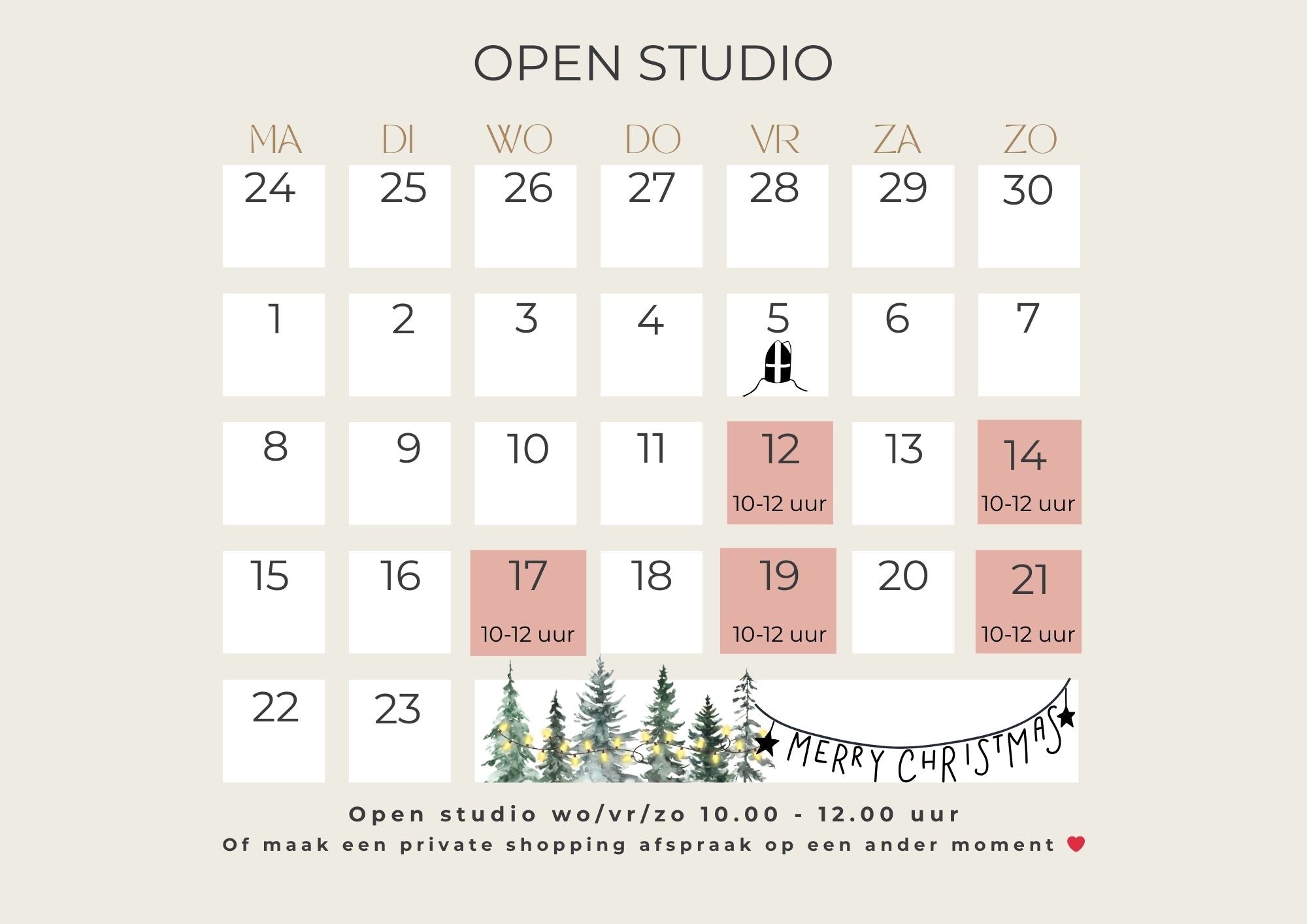 Je kunt de collecties bekijken en passen zonder afspraak. En je ontvangt een kleine attentie bij je aankoop in december. Super leuk als je komt!